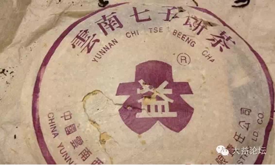 这个紫大益大票打101,叫2001年四号青饼,曾在茶网闹得沸腾,记号是断南字,南字一字部份断的。好多当真货卖。其实这茶是勐海茶厂旧人在别的茶厂2003年后做的,外包包装纸似2003年风格,但无2003年记号双勐暗记。上图后再和真品比较。