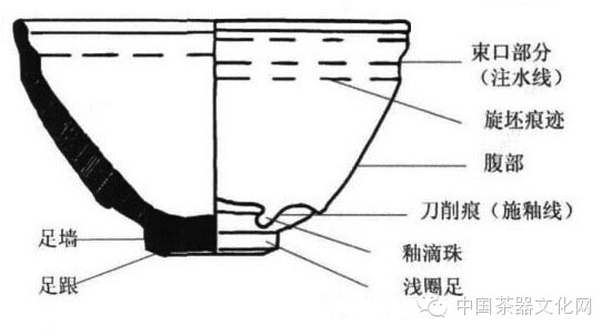 “盏色贵青黑,玉毫条达者为上,取其燠[yù]发茶采色也。底必差深而微宽,底深,则茶宜立而易于取乳;宽则运筅旋彻,不碍击拂,然须度茶之多少,用盏之大小。盏高茶少,则受汤不尽。盏惟热,则茶发立耐久。”