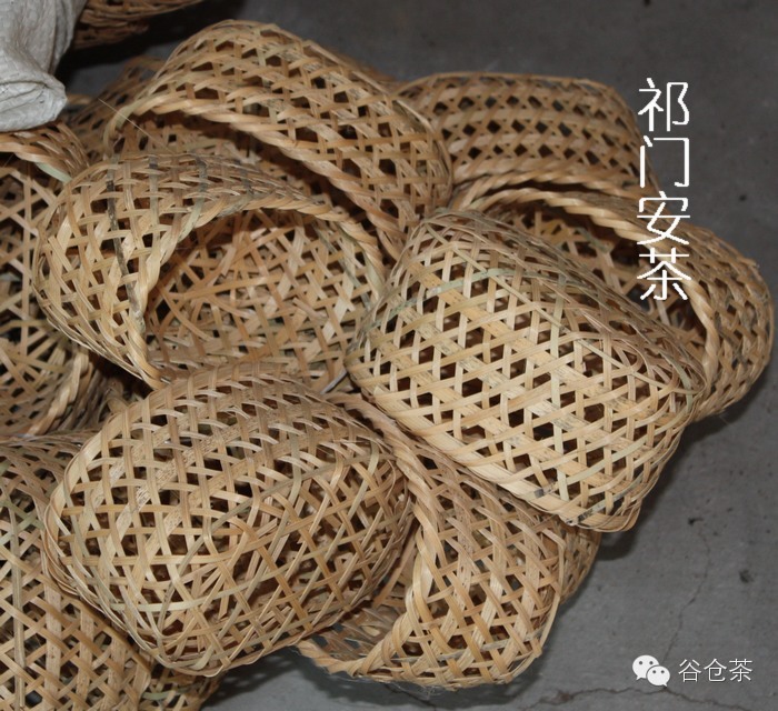装篓:茶叶装篓,轻压,装篓时茶叶于箬叶竹子近距离接触,温温热气促使茶香箬香竹香三香合一也是形成安茶独特香气口感的重要原因