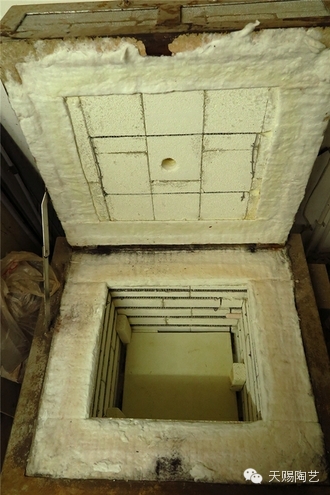 四周是厚重的保温隔热材料,内嵌电热丝。顶部有一散热孔,可以通过窑塞辅助控制温度的升降速度。