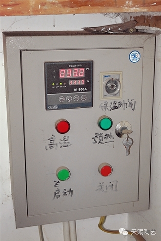 生坯摆放妥当后,在控制箱上设定需要的温度,按下启动就好啦。整个烧制过程需要两天时间。